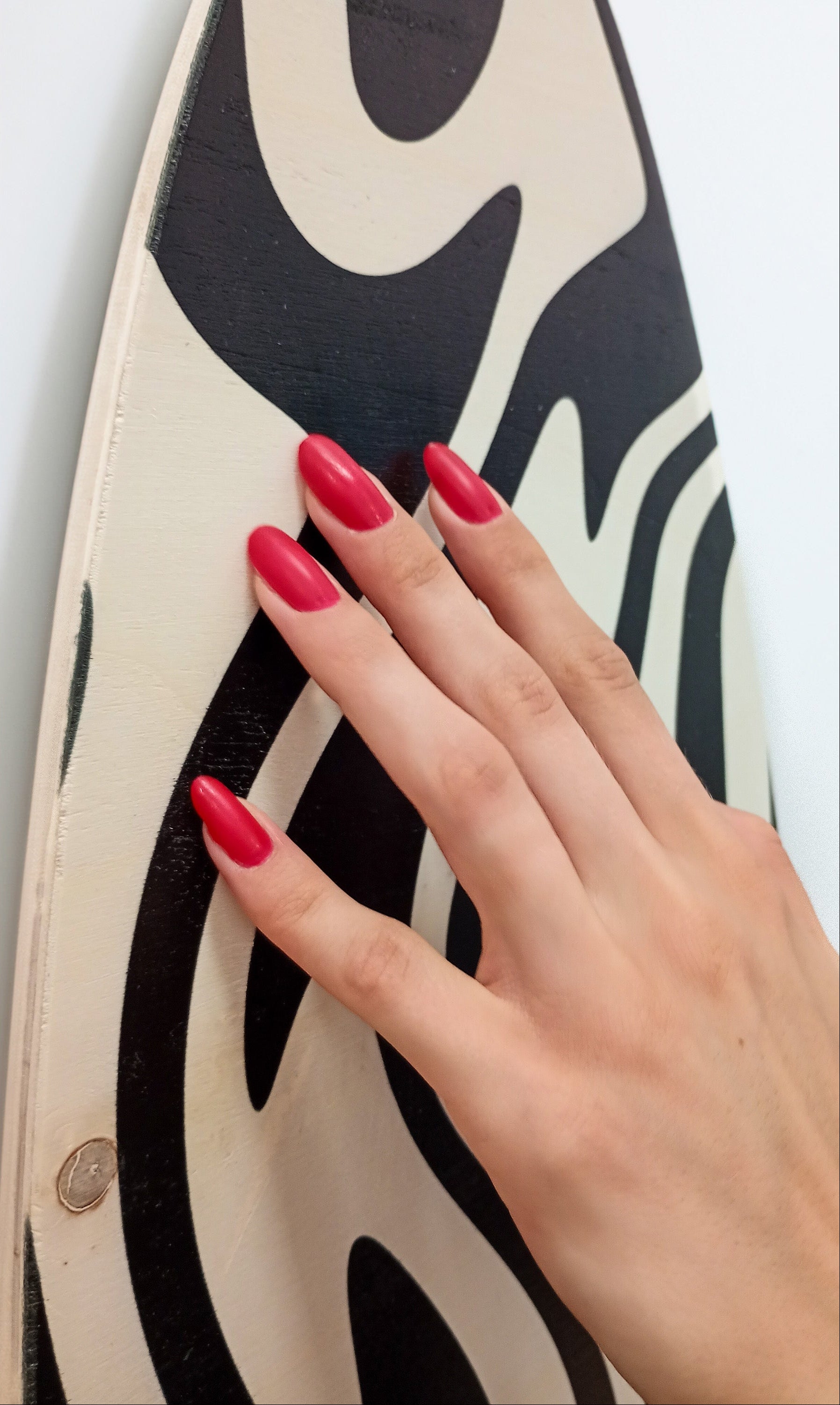 The modern print gives the surfboard a bold yet elegant look, while the subtle matte finish enhances its decorative quality. This surfboard is an excellent choice for living rooms, bedrooms, hallways, offices, and commercial spaces, where it draws attention and adds an individual, stylish touch to the interior.