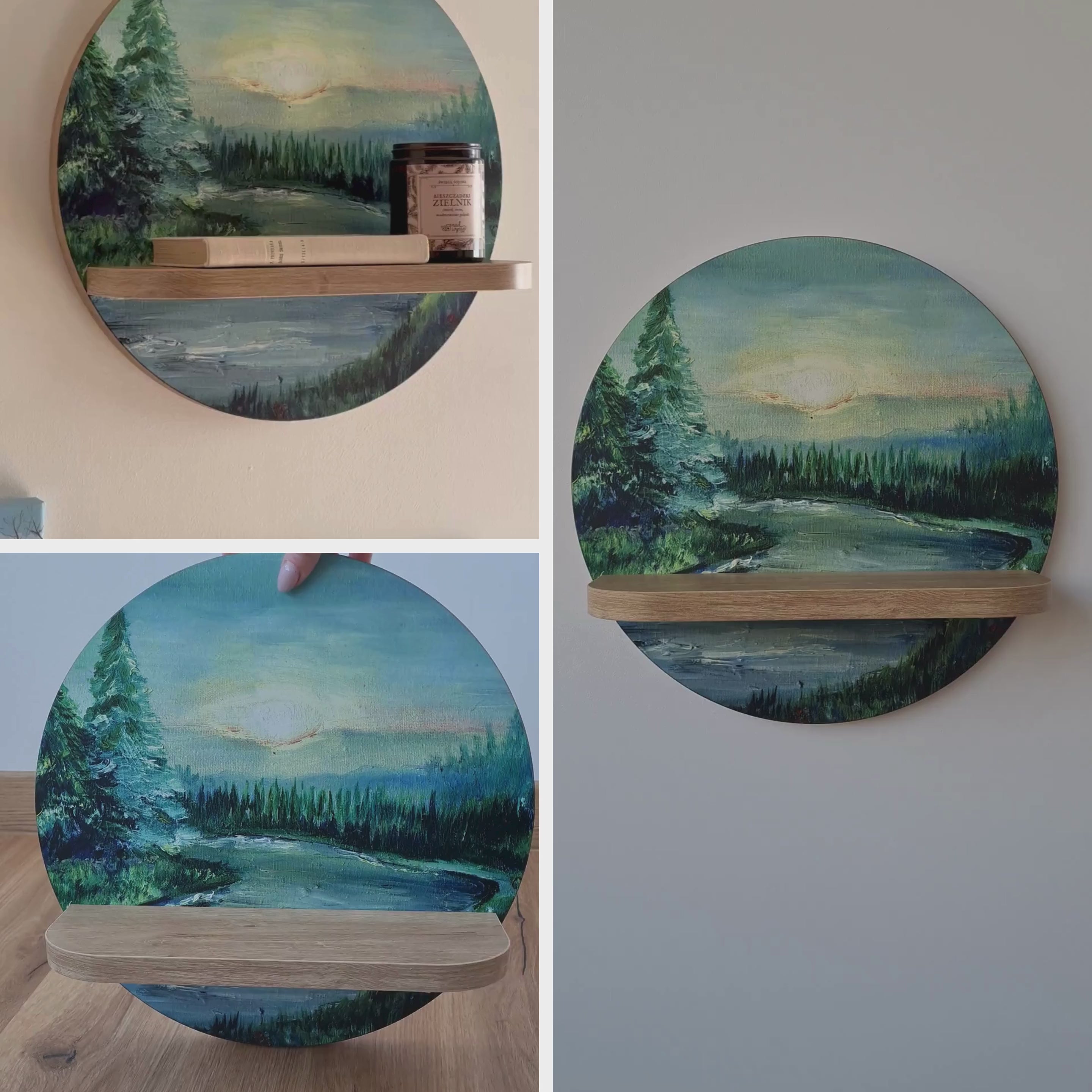 Dieses Regal ist mehr als nur eine Ablage - es kombiniert ein kunstvolles Hintergrundmotiv mit einer funktionalen Fläche für Ihre liebsten Dekorationsstücke. Wählen Sie zwischen unserer harmonischen runden Form für ein Gefühl von Balance oder unserer markanten ovalen Form für einen modernen Akzent. Ob in der natürlichen Eiche-Optik für Gemütlichkeit oder im edlen Schwarz für pure Sophistication - dieses Regal aus robuster, laminierter Möbelplatte wird zum optischen Highlight in jedem Raum.